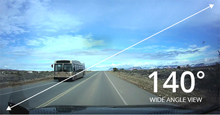 A 140-degree wide angle lens view minimizes blind spots to assure recording of all events.
