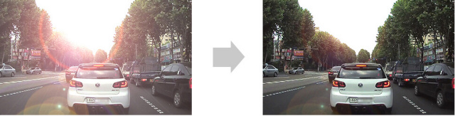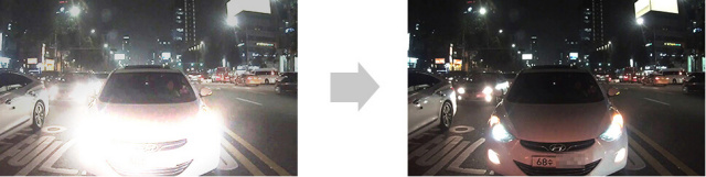 When you are driving under bright sunlight, coming out of a tunnel, or getting under the shadow of a tall building etc, a sudden change in frontal light exposure levels can result in excessively bright or dark recordings. The Wide Dynamic Range (WDR) function eliminates excessively bright spots on the recording to correct its color balance in order to ensure a clear image.